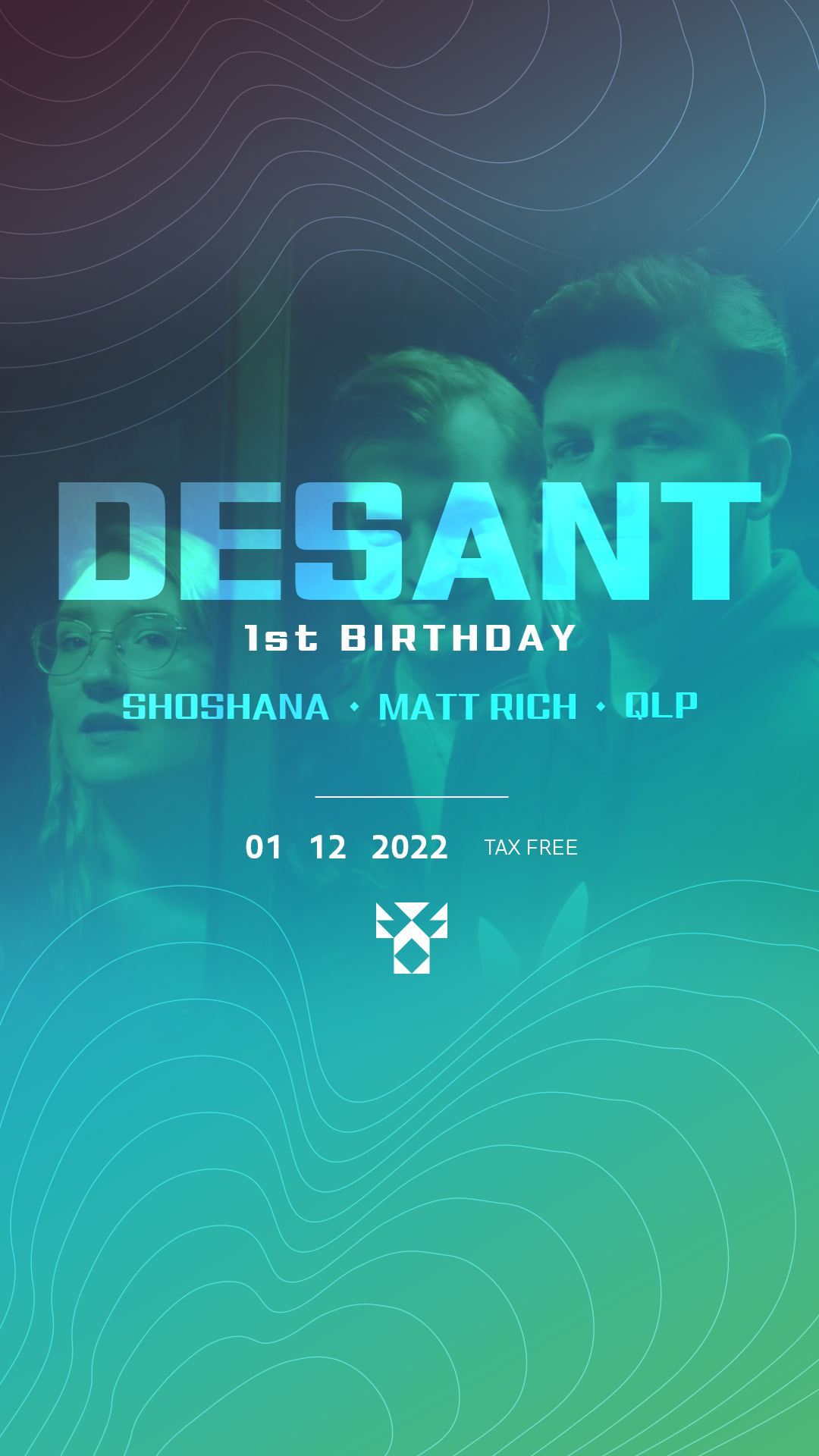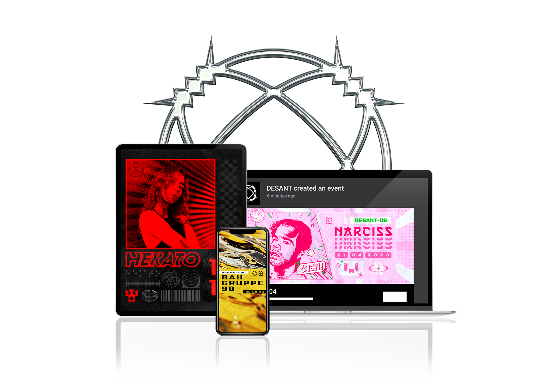 A neon sign featuring the DESANT logo was also produced based on my design. It is displayed at events near the DJ booth, serving as a distinctive visual element that reinforces the collective’s identity in the physical space and enhances the atmosphere during performances.
