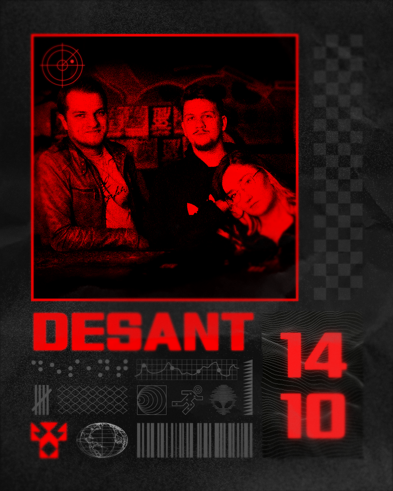 The DESANT logo represents barbed wire twisted into the shape of a planet. This imagery reflects the dual nature of techno music: raw, industrial, and uncompromising on one hand, while expansive, universal, and boundary-breaking on the other. The barbed wire symbolizes the intensity and grit of the underground scene, while the planetary form suggests connection, movement, and the global reach of electronic music. Together, these elements embody the collective’s vision of techno as both grounded in resistance and open to exploration.
